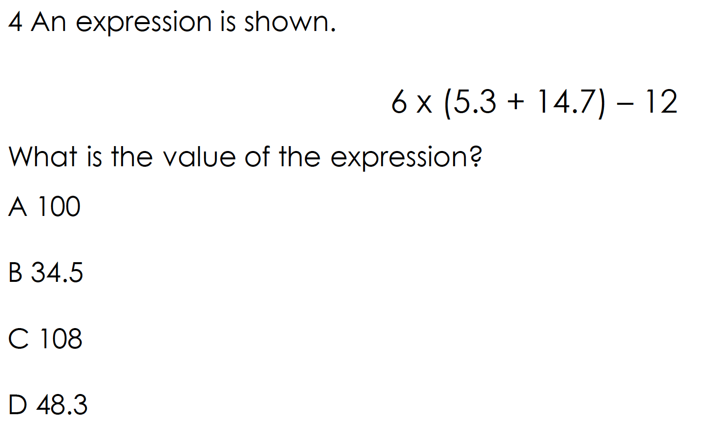 Order of Operations Mini Assessment #1