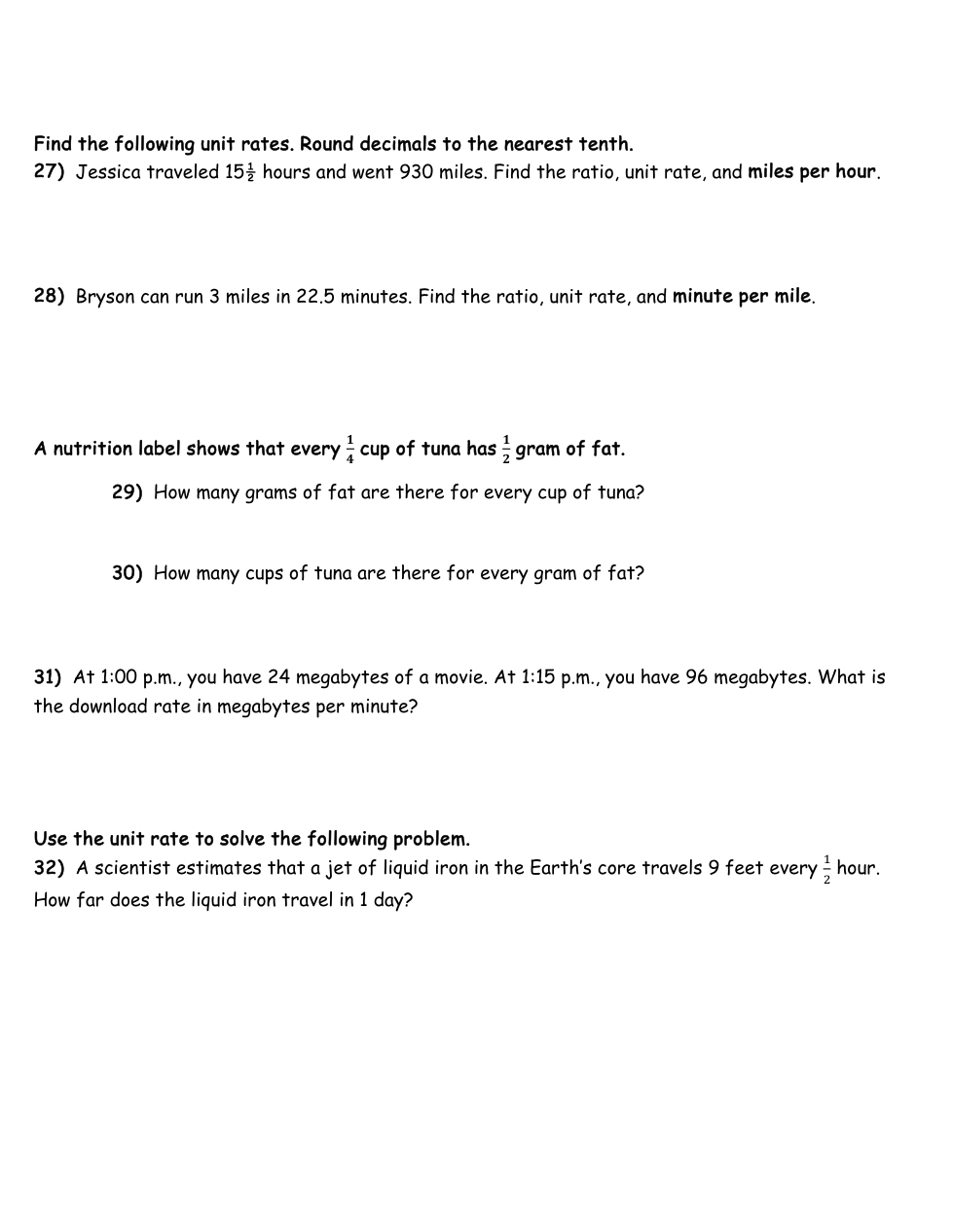 Find the unit rate.Write answer like: 12 mph