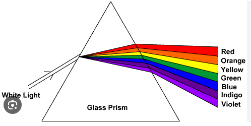 Explain how a prism can split white light into a spectrum of colours.