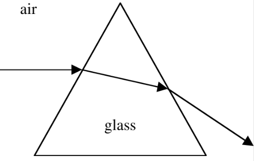 Explain using your knowledge of light why light bends as it enters and leaves the glass prism