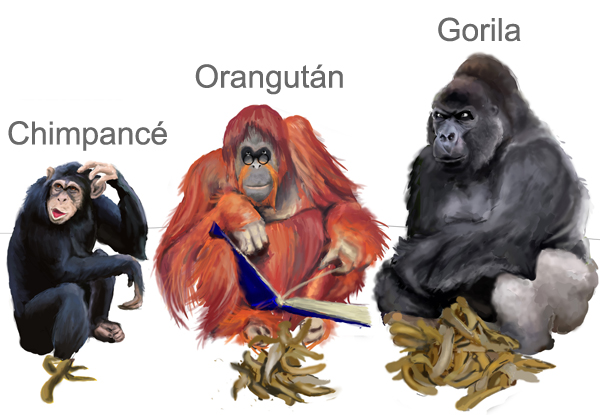 ¿Cuál come menos plátanos, el gorila o el orangután?