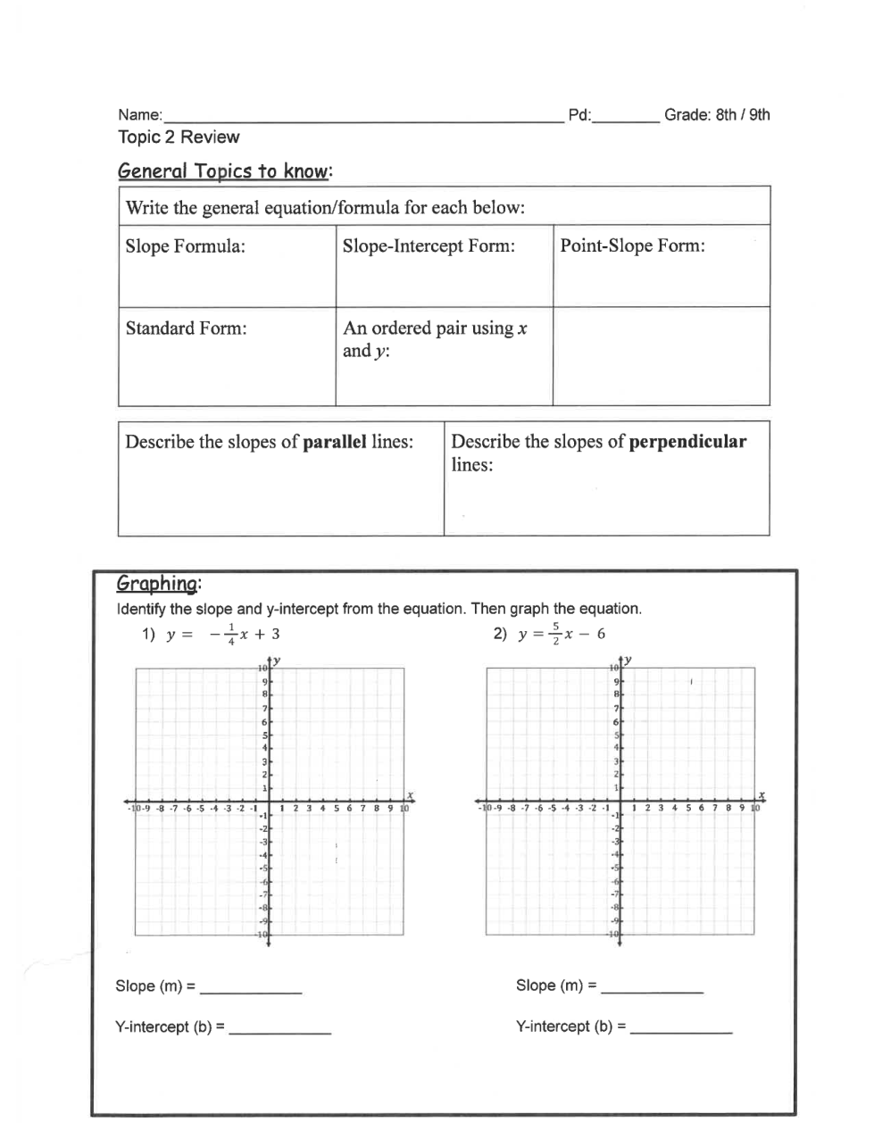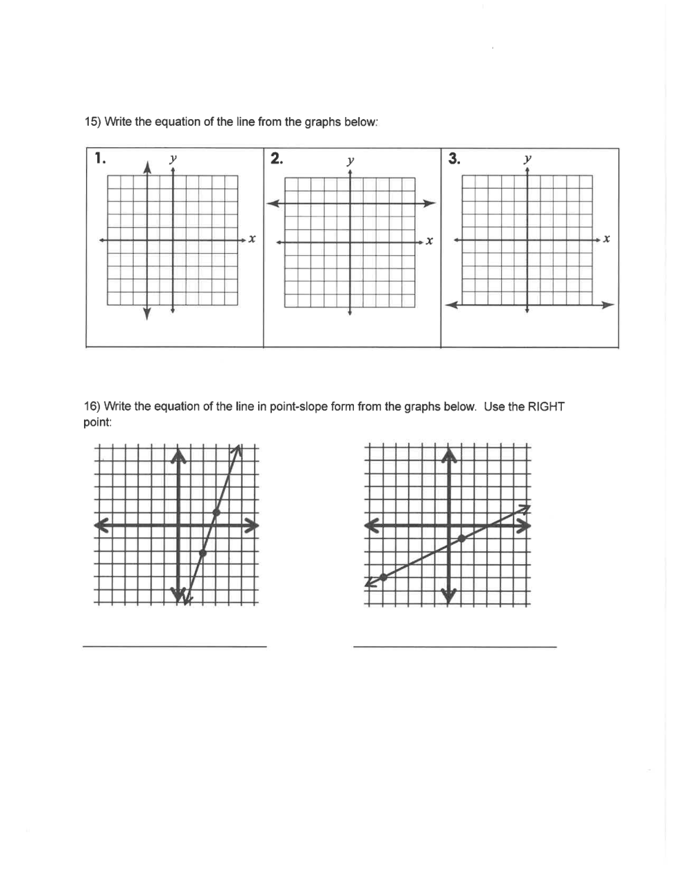 Students will need to pick up a paper copy of page 1 and 2 so that they may practice graphing the lines on paper.