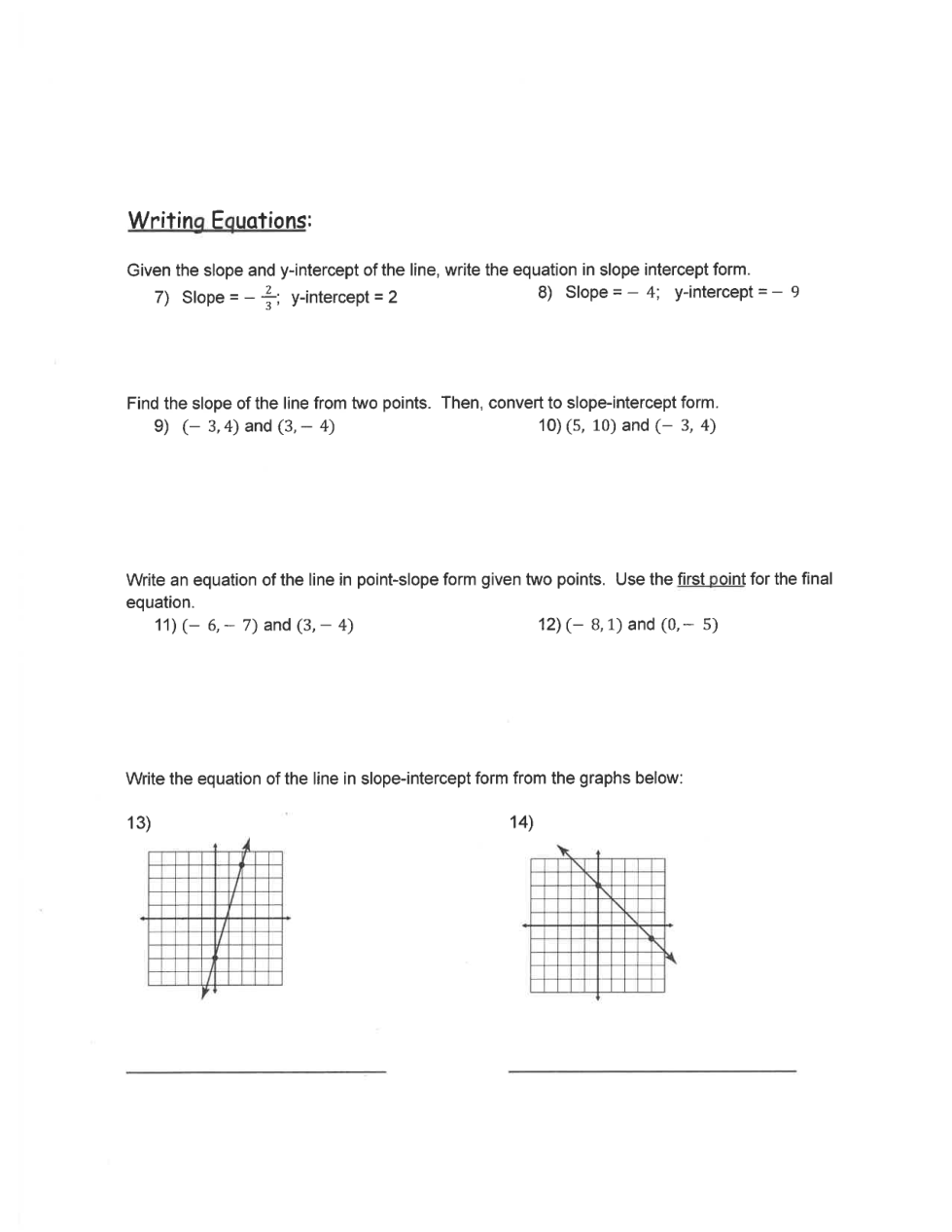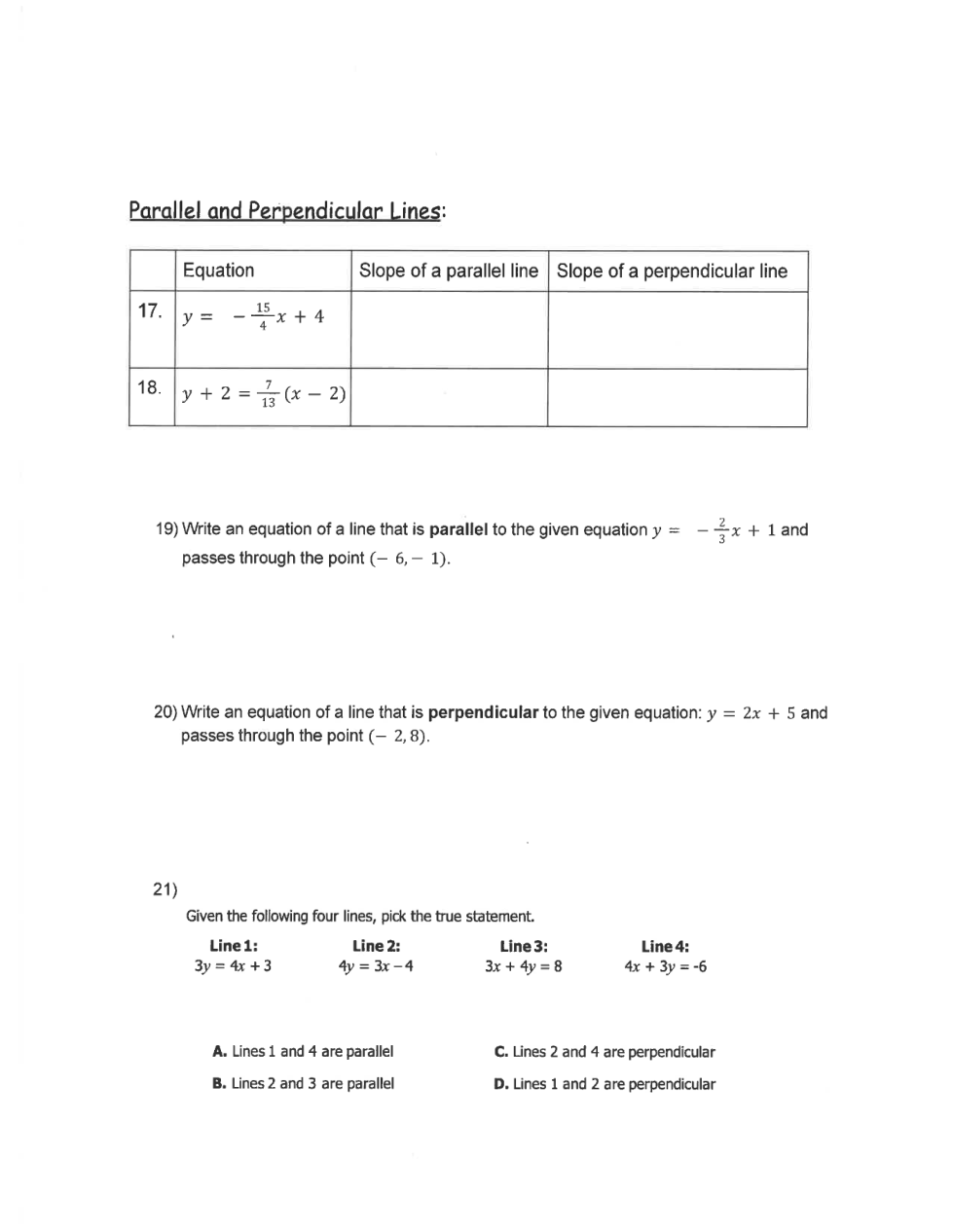 Students should first answer questions 8-18 before attempting to graph the lines.