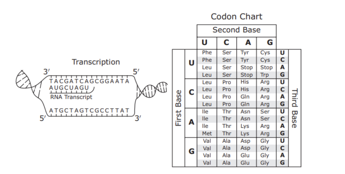 For each sequence of DNA is shown. Type the complementary RNA sequence , then use the codon chart to determine the amino acid sequence: