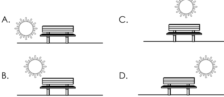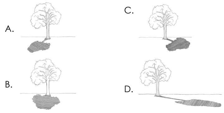 Which picture shows how the tree’s shadow most likely looked at 7:00 A.M.?