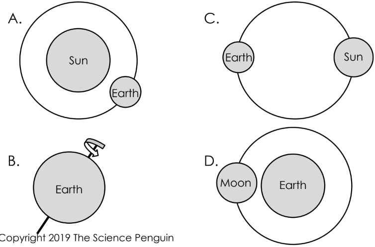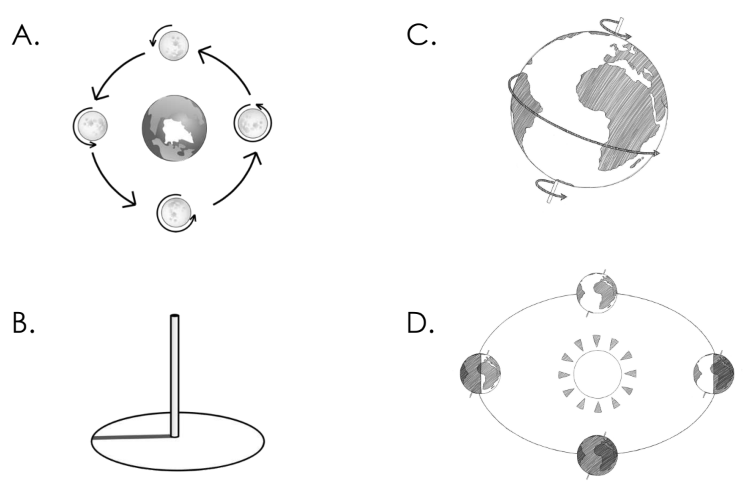 A student designed the model on the right to explain why half of Earth experiences day while the other half experiences night.