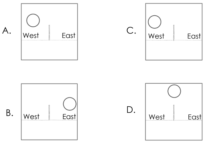 Which picture best shows the Sun’s location at 10:00 A.M.?