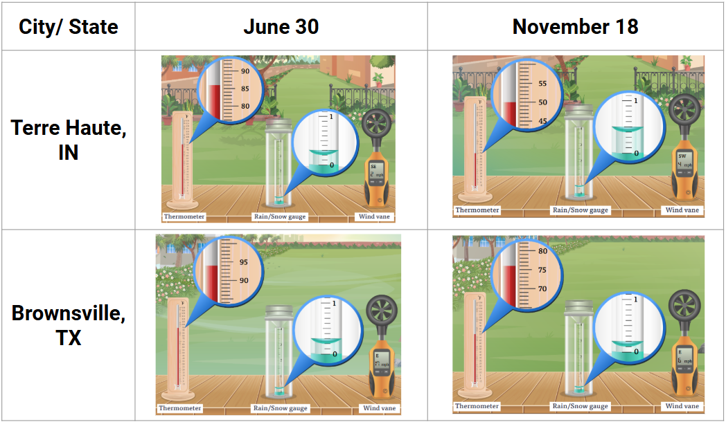 Select the correct information for each city for June 30 and November 18.