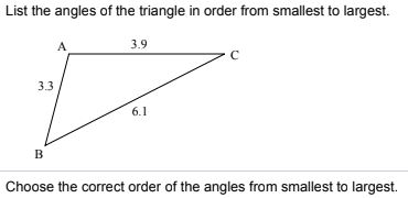 Once you find the largest angle of a triangle, how do you find the longest side?The longest side is the side across __________________