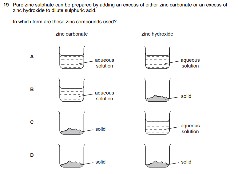 Hint Zinc hydroxide and zinc carbonate can both be taken as insoluble.