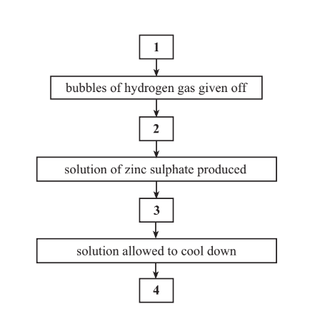 4. Zinc added to dilute sulphuric acid until no more zinc reacts (Note bubbles of hydrogen given off)