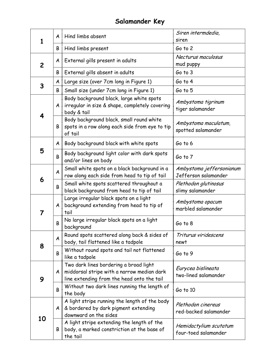 You will need a picture of the salamanders to be able to do part 2 of this - there are about 12 questions related to it and it's just easier to have it on paper. Please do not write on the paper given.