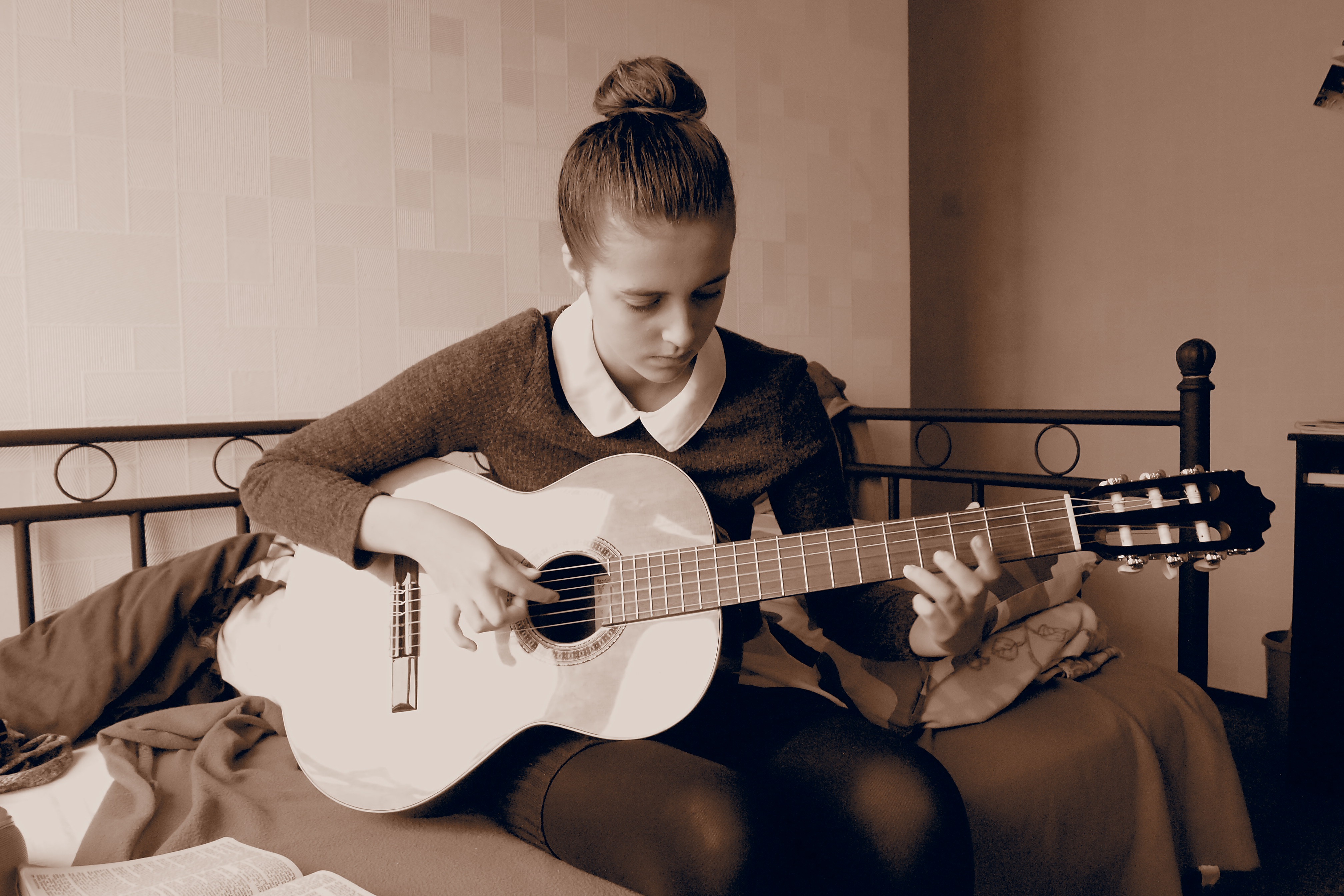 This person is 14 years old and plays the guitar. This person has an older brother and likes playing video games.