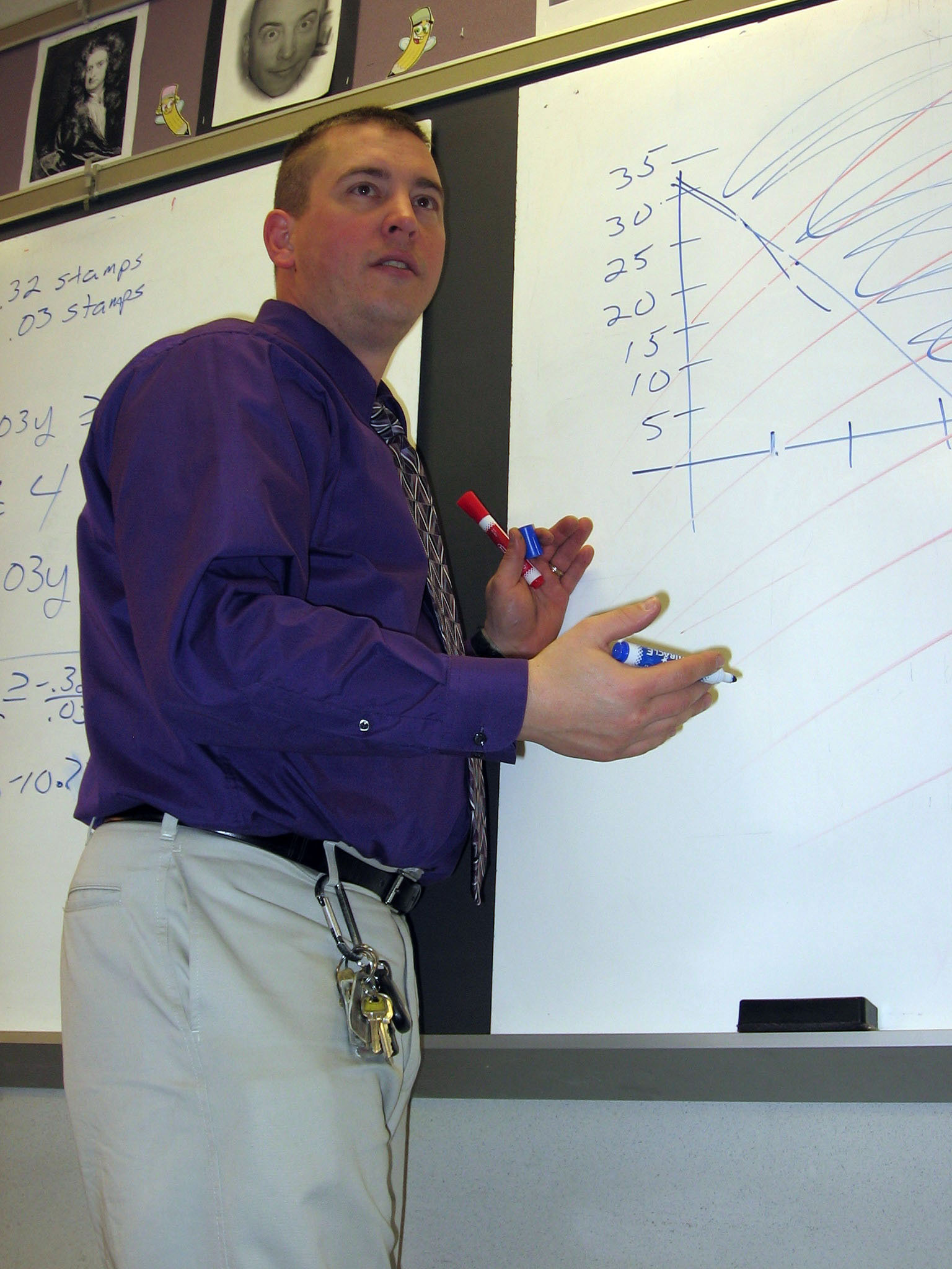 Mr. John is a teacher. He teaches math to students every day. In the morning, he prepares the lesson and makes sure the classroom is ready. He explains the lesson to his students and helps them when they have questions. After lunch, he checks the students' homework and gives them feedback. At the end of the day, he meets with other teachers to discuss how to improve the lessons. Mr. John loves his job because he can help children learn and grow.