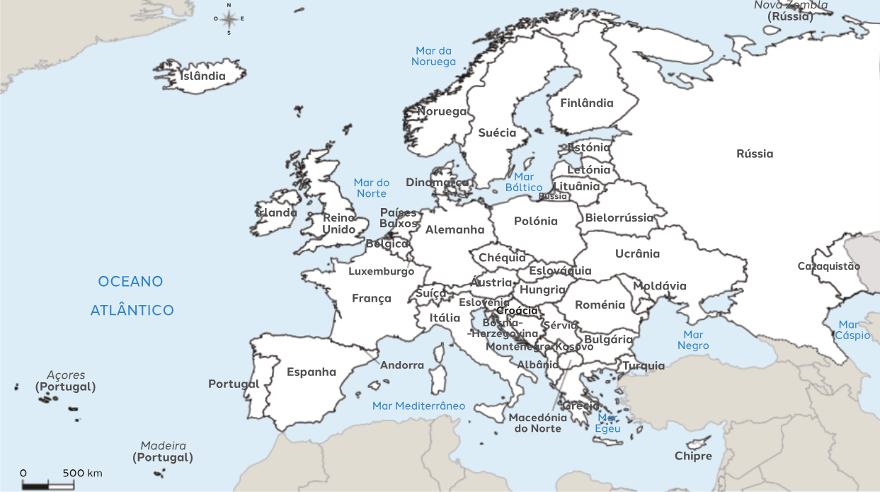 No mapa, marca a cor de laranja, o país quer faz fronteira terrestre com Portugal.