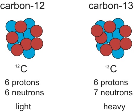 - Example: carbon-12 and carbon-13 are isotopes of one another because they both have the same atomic number but a different number of neutrons
