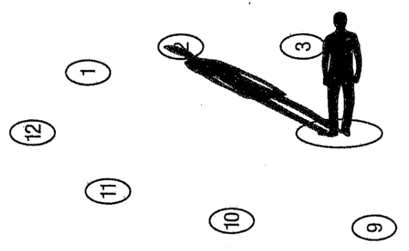 In an activity, students make a human sundial. The sundial uses the sun to tell the approximate time of day.