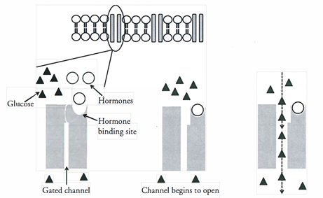 What process is shown above and explain in detail what happened that allowed the glucose molecules to pass through.