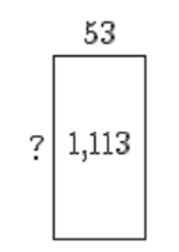 Solve the expression 1,113 ÷ 53 to complete the area model below