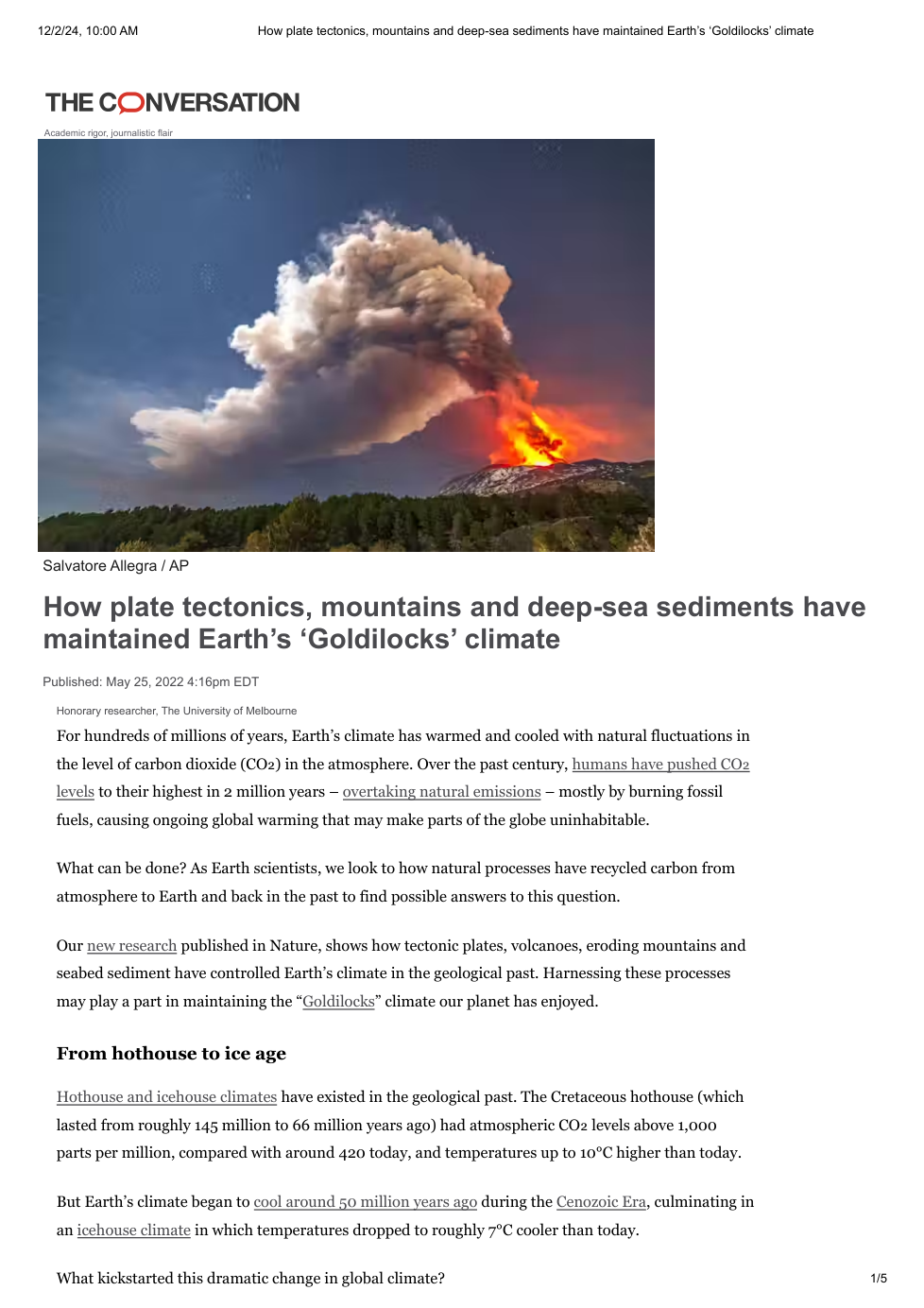 Lesson 4.14 Plate Tectonics and the Carbon Cycle