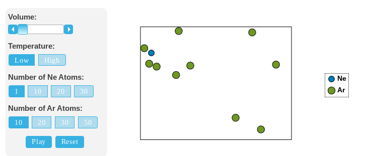 Run the simulation with 10 Ar atoms and estimate/time how long it takes for the blue atom to make it to the other side of the container).