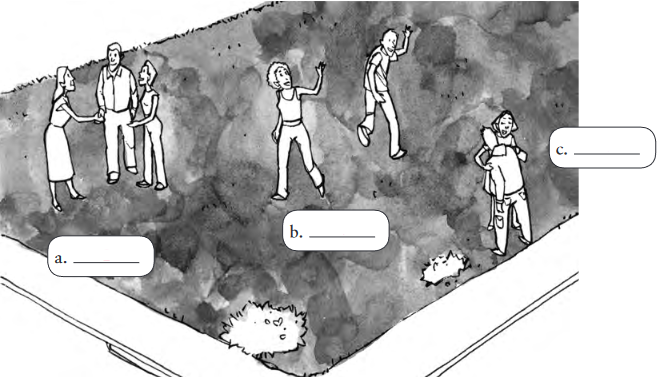 Listen to all three conversations. Look at the drawing and then drag the number of the conversation under the appropriate group of people.