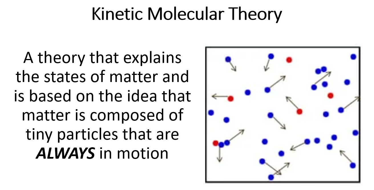 The Kinetic Molecular Theory (KMT) explains the behavior of gas particles by describing their motion and interactions. Thus, we can understand and predict how gases behave in different situations.