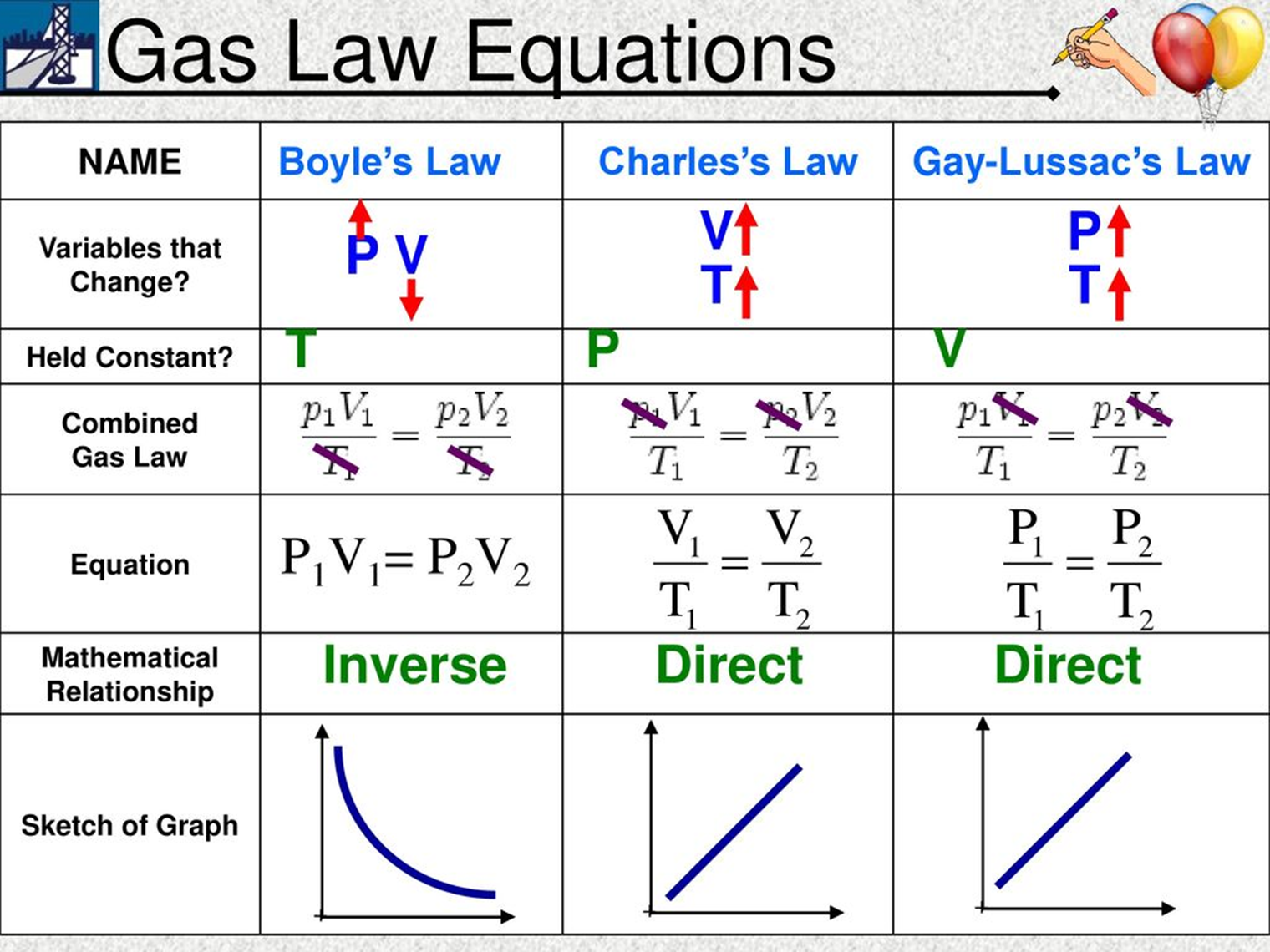 Gas Laws: Relationships between pressure, temperature, and volume, like in balloons or weather changes.