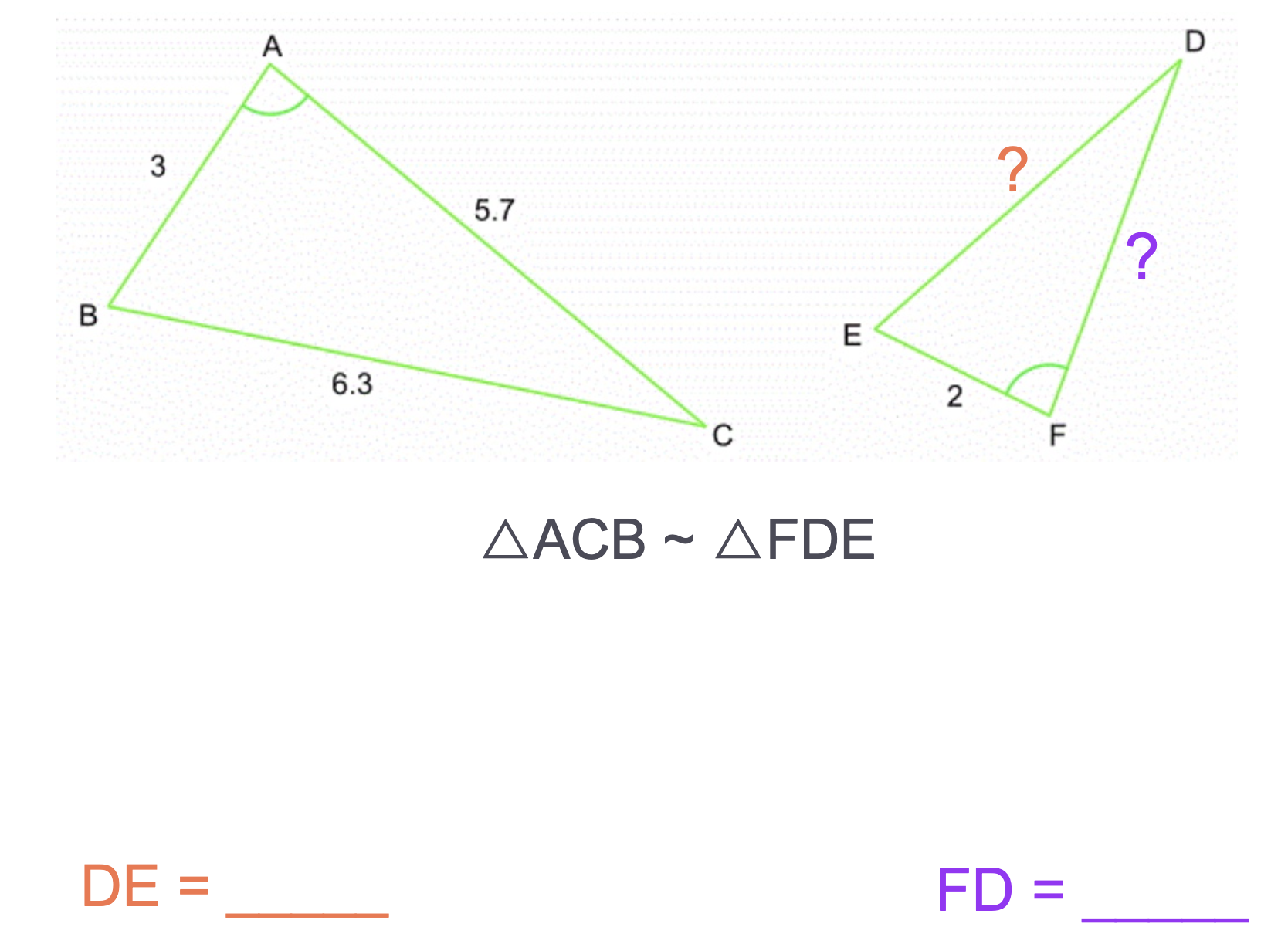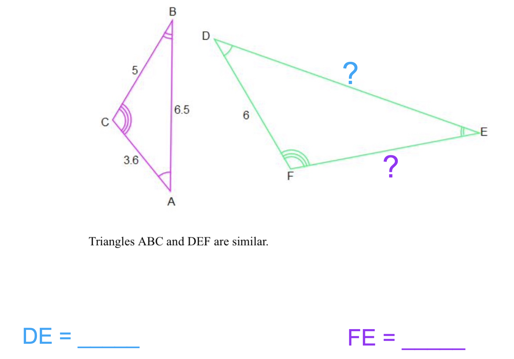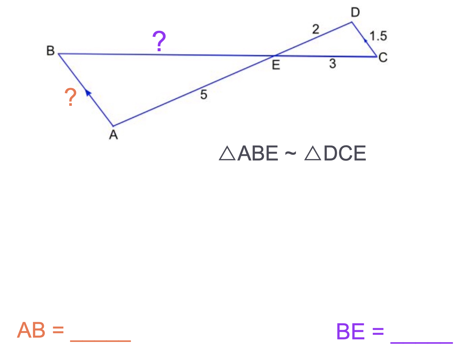 Why are the triangles similar? Answer this in the Show your work box. Then find the missing side, x and put your answer in the reply box.