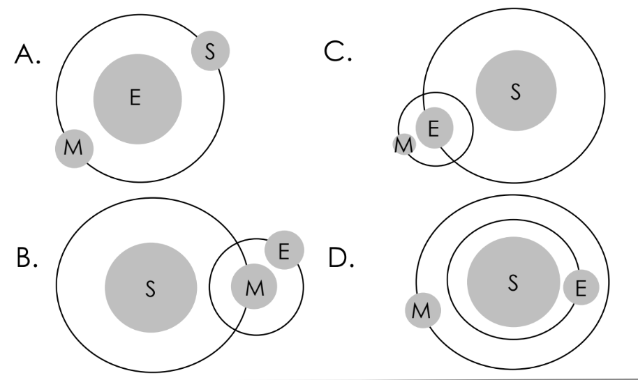 Which of the following correctly represents the arrangement of the Sun, Earth, and Moon system?