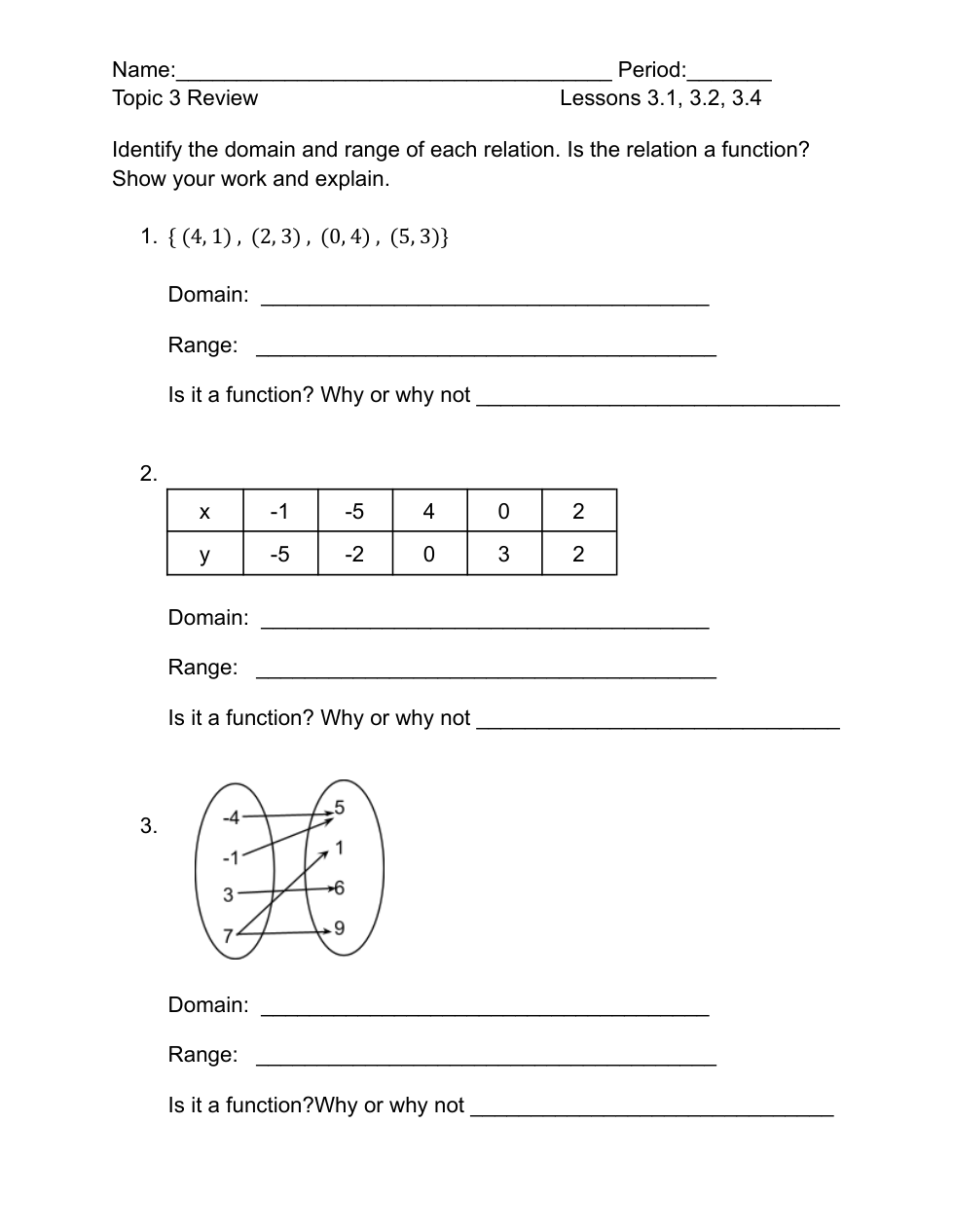 Is the relation a function?If yes, type yes. If no, type no followed by a comma and the number that does not make it a function. example: no,4
