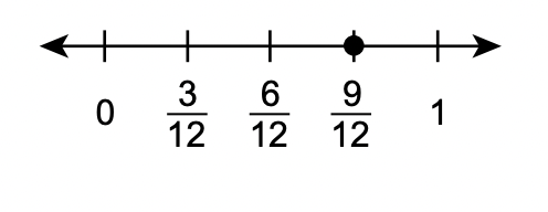 Which number line shows a point that is graphed at a fraction that is equivalent to \frac{2}{3}?