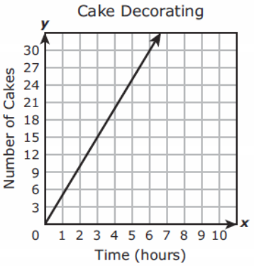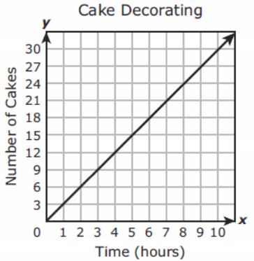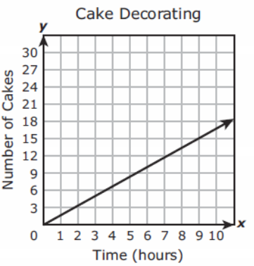Judy can decorate 3 cakes in 5 hours. Which graph has a slope that best represents the number of cakes per hour Judy can decorate?