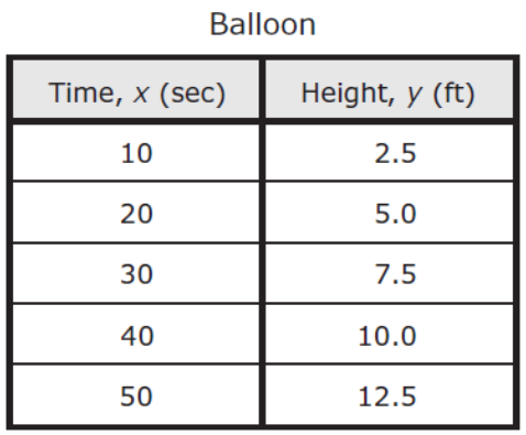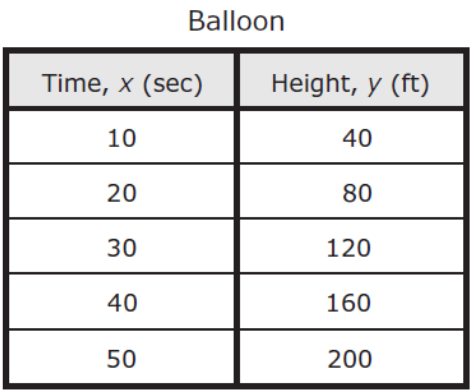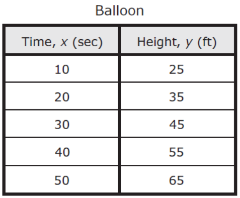 Which table shows the relationship between the time in seconds, x, and the height of the balloon in feet, y?