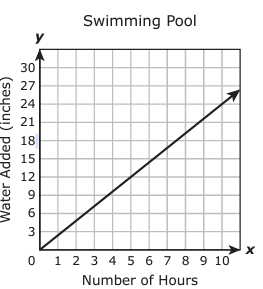 The line graphed on the coordinate grid can be used to determine the number of inches of water added to a swimming pool after different numbers of hours.