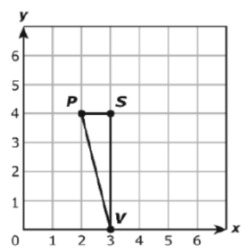 Triangle PSV is shown on the coordinate grid. The coordinates of each vertex of the triangle are integers.