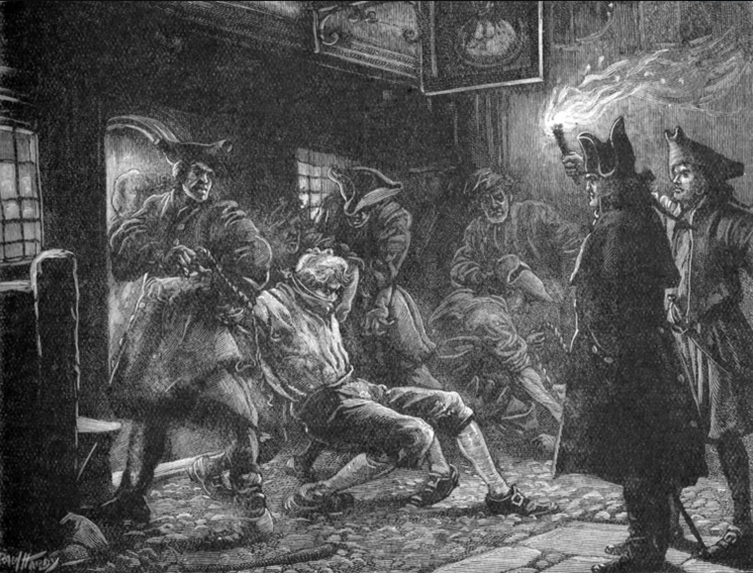 (Above) A British press-gang at work. Source unknown.