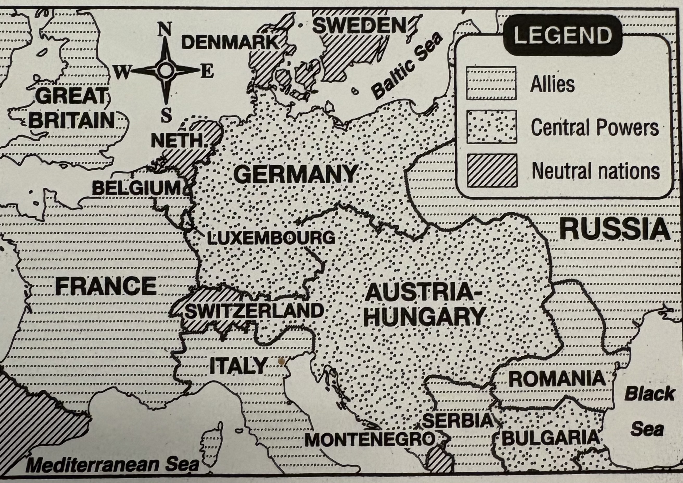 Which countries were part of each group of allies during World War 1? (Not all countries are listed).