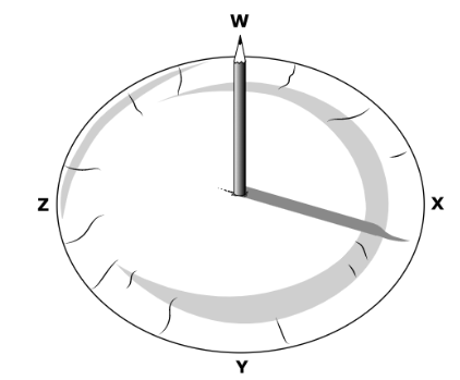 A student makes a sundial. The student takes a picture of the sundial at 3:30 P.M.
