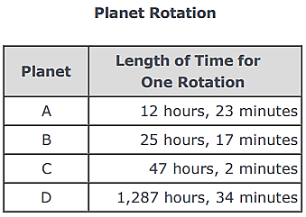 Planets rotate on their axis. The length of time for one rotation for each of the four planets is shown in the table below.