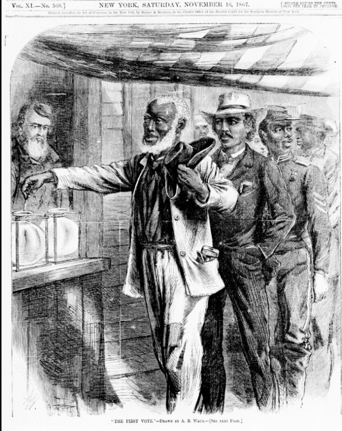 The document 2 image depicts a significant event in American history. Which of the following best explains the long-term impact of this event on the path of Reconstruction and the rights of African Americans?
