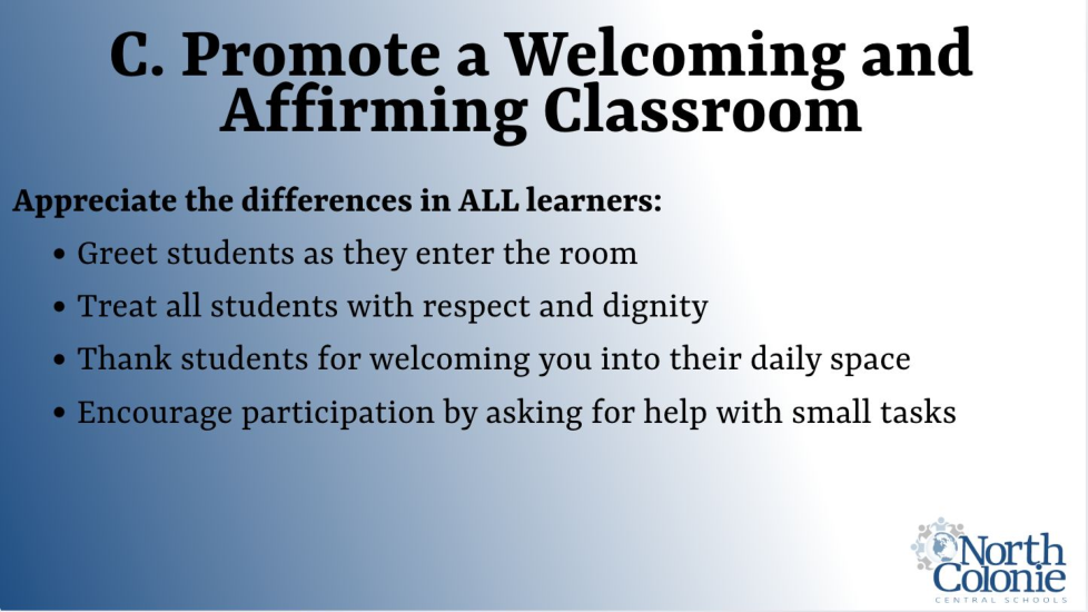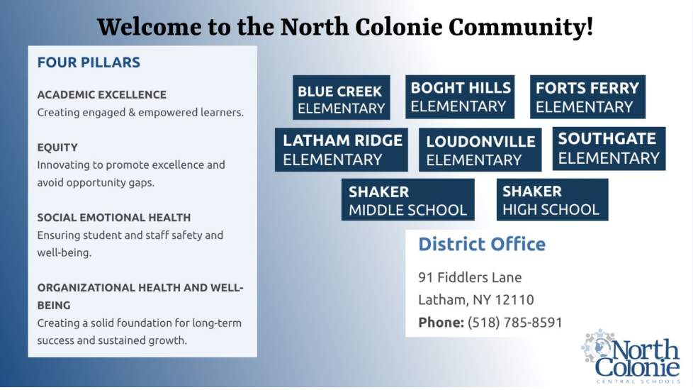 At North Colonie, it is our mission to ensure all students are provided the opportunity and necessary support to engage in relevant, challenging work which contributes to their academic and social growth and development.