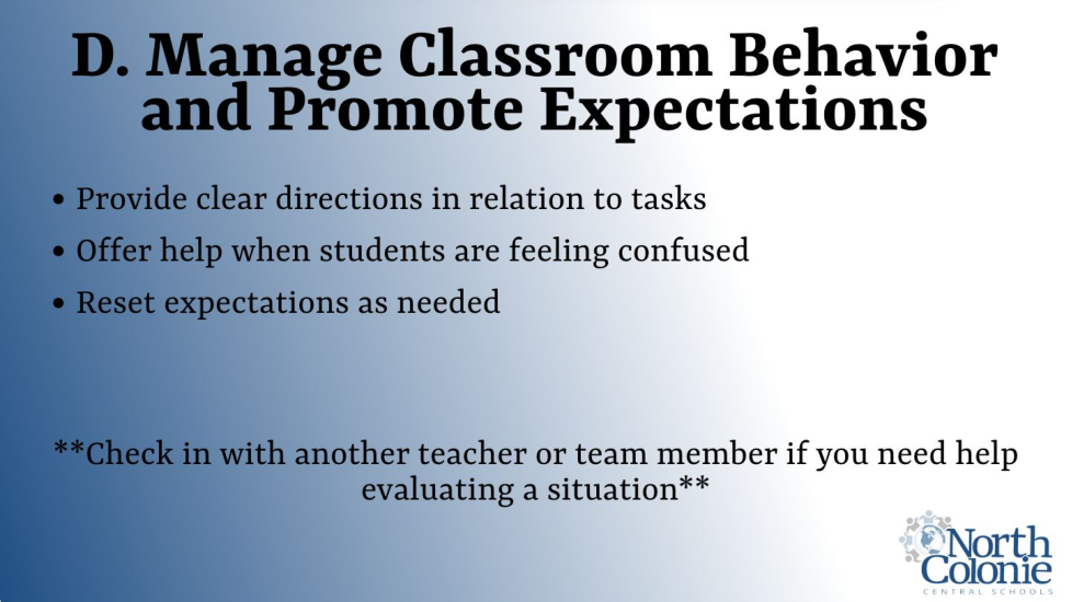 If a student is displaying undesired behavior, and things start to escalate, I can check in with a neighboring teacher to seek advice about next steps.