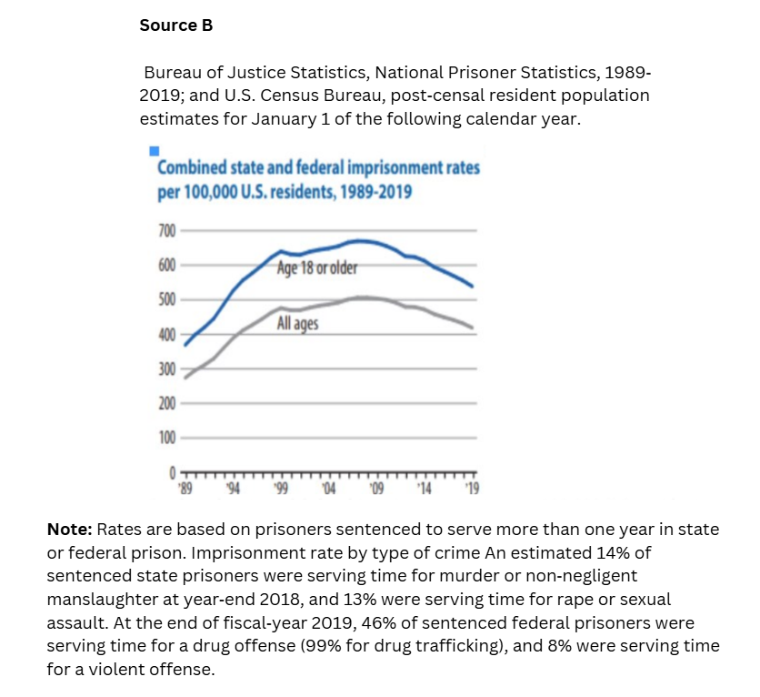 In source B, which claim best reflects the trends in imprisonment rates and their impact on equity in the U.S. based on the article and graph?