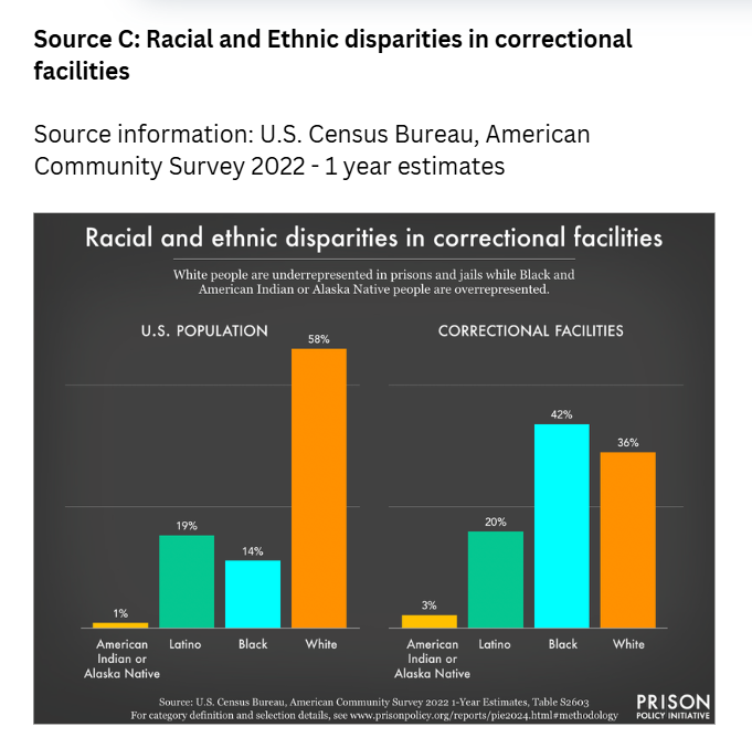 Based on the graph showing racial and ethnic disparities in correctional facilities, which of the following conclusions is most supported by the data?