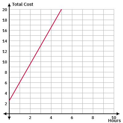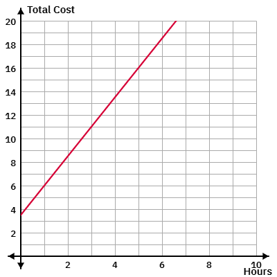 The Tarwheels roller rink charges $2.50 to rent skates. The rink charges $3.50 per hour, x, of skating. Which graph best models this situation, where y is the total cost to go skating?