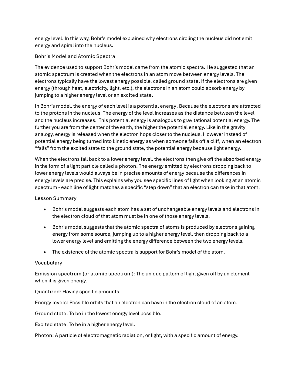 Lesson 5.4 Electromagnetic Radiation and the Bohr Model