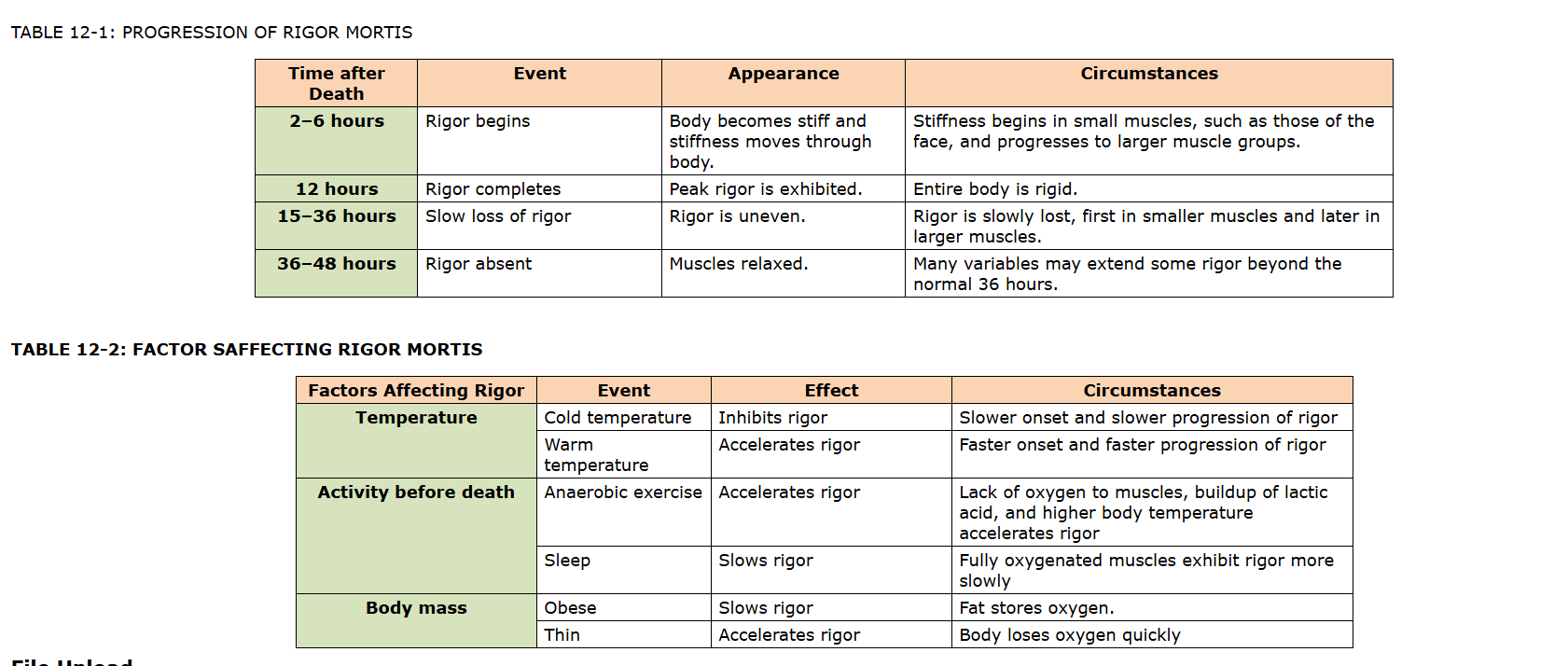 Factors that affect rigor