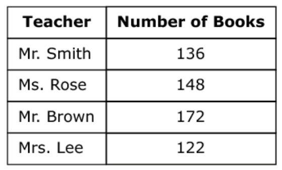 The table shows the number of books in four third-grade classrooms. One of the teachers is Tim's teacher, and one of the teachers is Sue's teacher.
