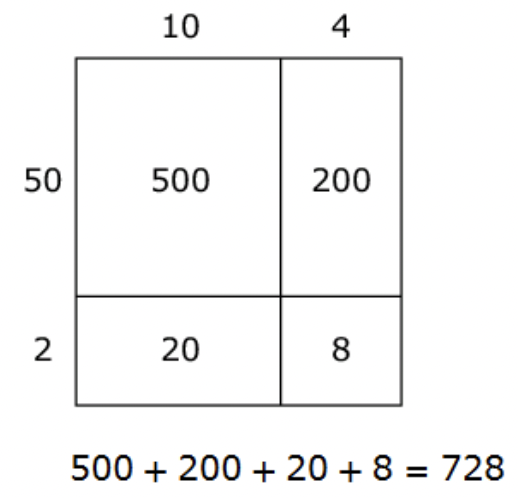 Brittany solves 52 \times 14 using an area model.